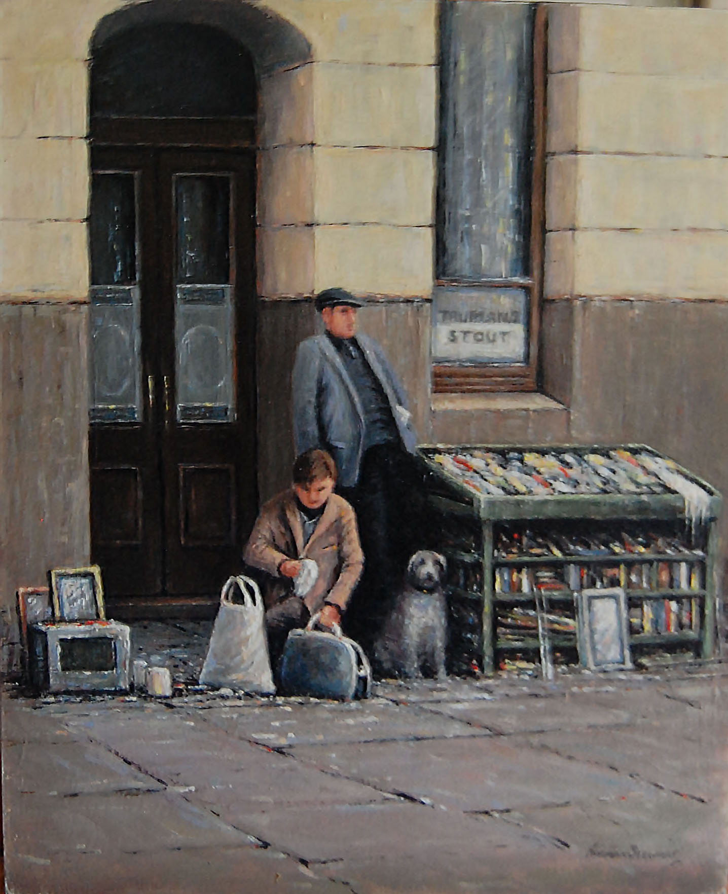 Two men and a dog in London